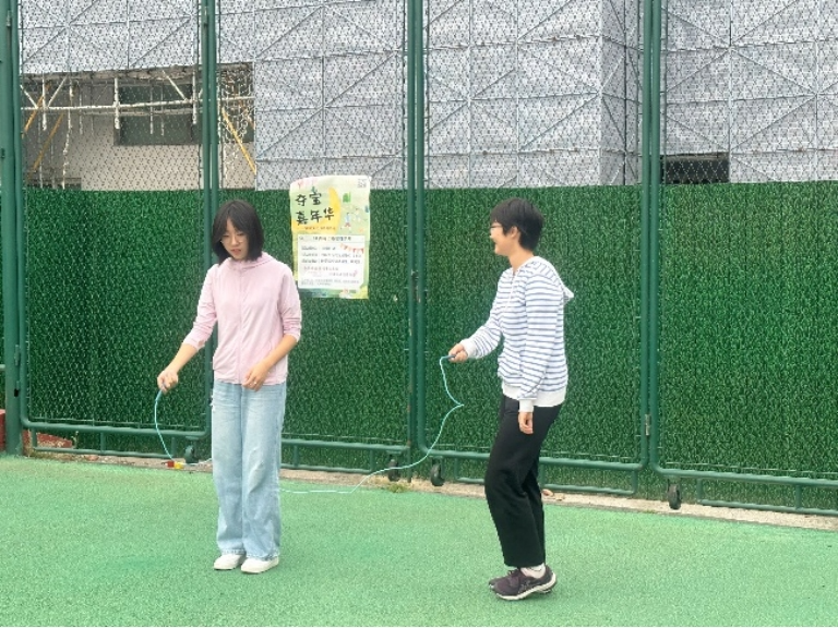 两人各握绳子一端,准备迎接挑战!一分钟的跳绳狂欢即将开始,心跳加速,节奏要跟上!可以选择一人跳跃,另一人负责摇绳,或者两人一起跳,共同摇动绳子,是时候展示团队精神和默契程度了。跳跃的不仅是绳子,还有小组成员之间的友谊和合作!