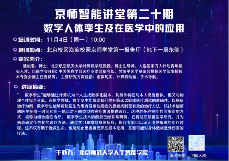 院(系)社区活动丨京师智能讲堂(二十)—— 数字人体孪生及在医学中的应用