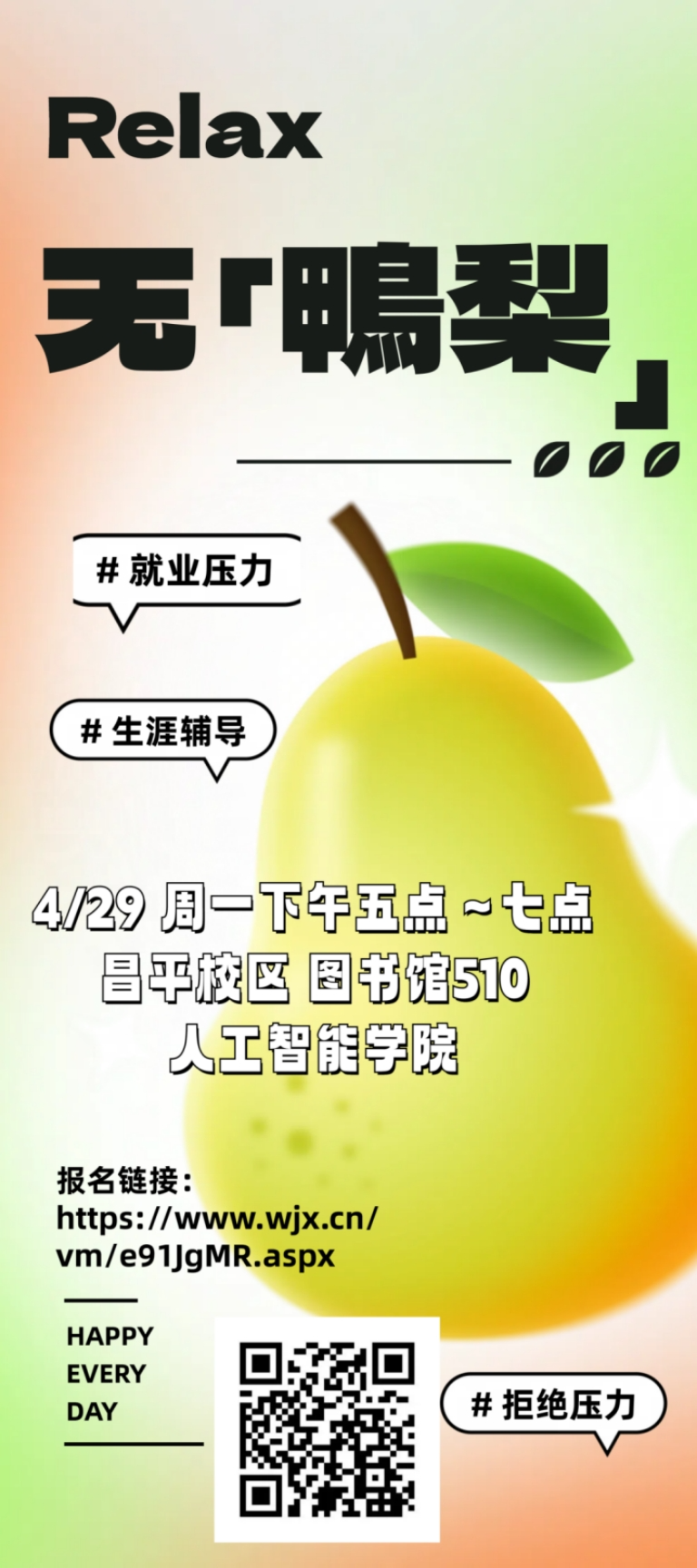 欢迎所有即将步入职场或正在寻求职业发展的同学们参与此次活动。不要错过这个学习如何在职场中保持轻松与自信的绝佳机会!