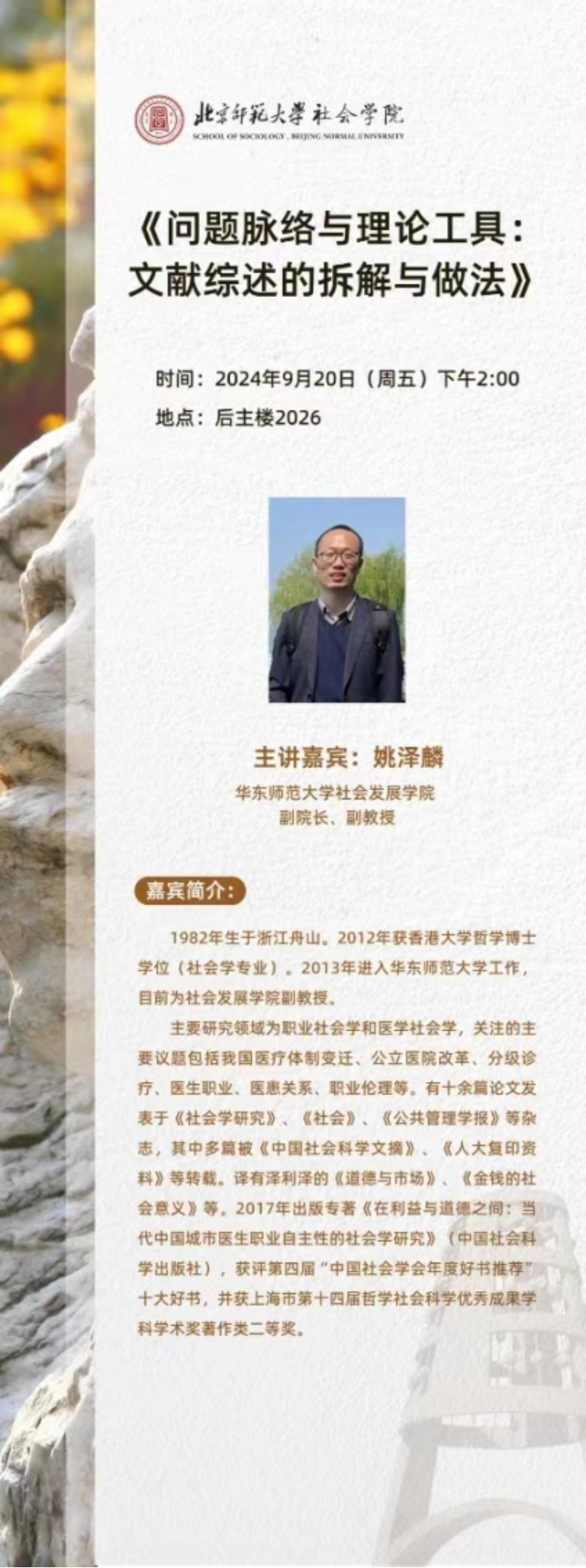 讲座题目:问题脉络与理论工具:文献综述的拆解与做法