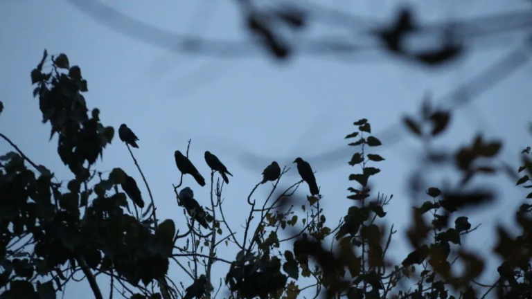 C:第一次是在大一的秋天吧。刚开始觉得这一群黑压压的鸟可真让人震撼啊。后来我不幸被鸦鸦的排泄物砸中,从此一看到它们就变得警惕。