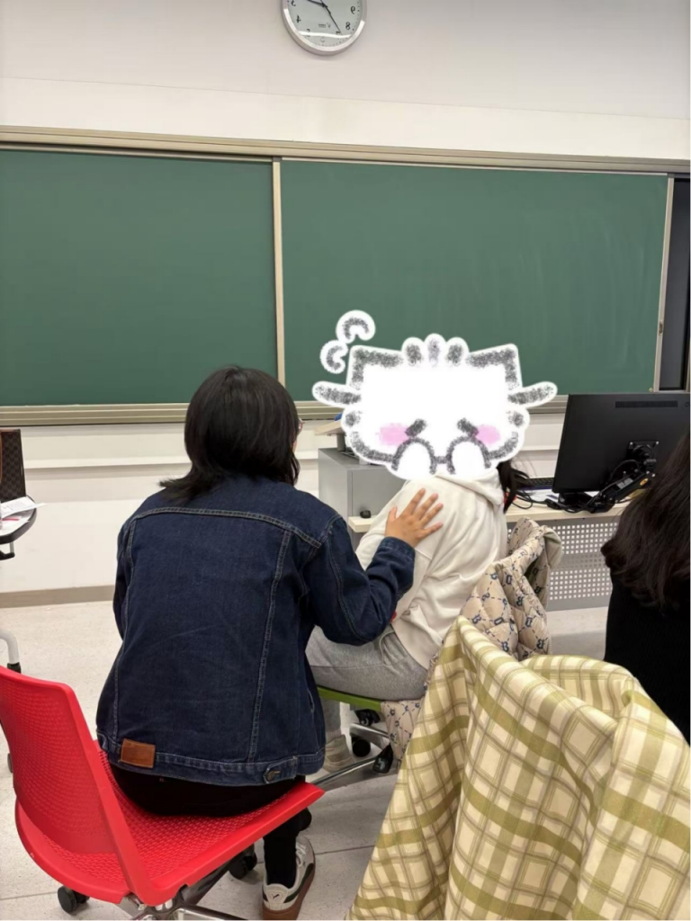 “如果那位朋友是你自己,你能否以刚刚分享的方式对待自己呢?”老师向大家发出邀请,鼓励同学们将关怀的对象从对朋友转变为对自己,初次尝试自我关怀。“大家可以将说给朋友听的话,念给自己听,相对朋友做的事,这次陪自己去完成他们,比如送一束花,买一个礼物给自己。”
