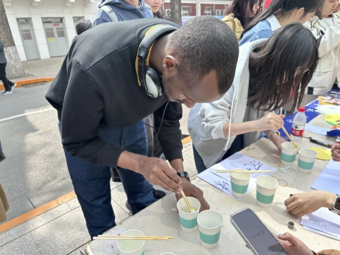 同学们积极回想与“水”相关的诗句,优秀的中华文化吸引了在校留学生的驻足,大家共享中华诗词的魅力,尽展师大人的诗意风采。