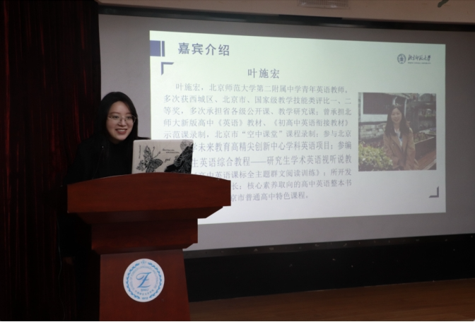 叶老师以教师时光里的散文诗为主题分享了短篇记叙文和原版小说的授课思路,以记叙类文本为切口展现教师生活中形散神不散的诗情画意。叶老师的讲座对我主要有以下三点启发。一是敏锐深刻的文本解读能力,教师要先作为读者发现文本的美,才能作为导演和演员把这份美呈现给学生。二是发自内心的共情能力,教师既要敢于流露自身情感,又要适时推己及人,与学生进行心灵沟通。三是持续学习和创新的能力,教学有法,教无定法,持续学习是基础,不断创新是源泉。感谢叶老师的分享,希望我自己也能在教学中传递诗意。