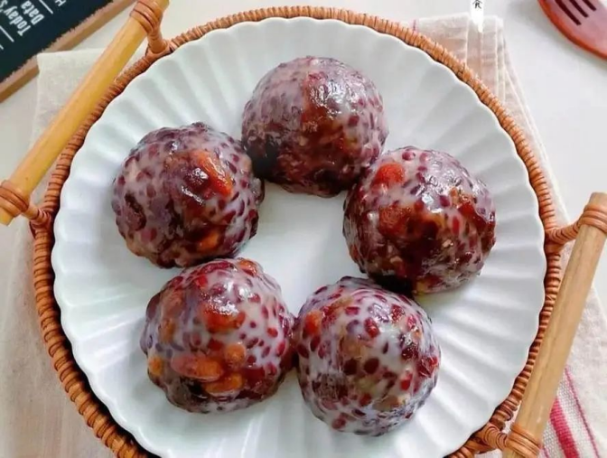 在新乐群食堂吃到了香甜软糯八宝粘豆包,于是寒假决定自己也试一试!准备适量的玉米粒、黑米、花生、芸豆、红豆、麦仁浸泡4小时左右,淘洗后放入锅中煮至豆粒出沙即可,将煮熟的谷物盛出放入容器加入糯米粉翻拌均匀,可以根据自己的喜好加入白砂糖、葡萄干、红枣块等等。随后搓团、裹上一层淀粉,放入蒸锅蒸10分钟左右,美味营养又健康的八宝粘豆包就做好啦!