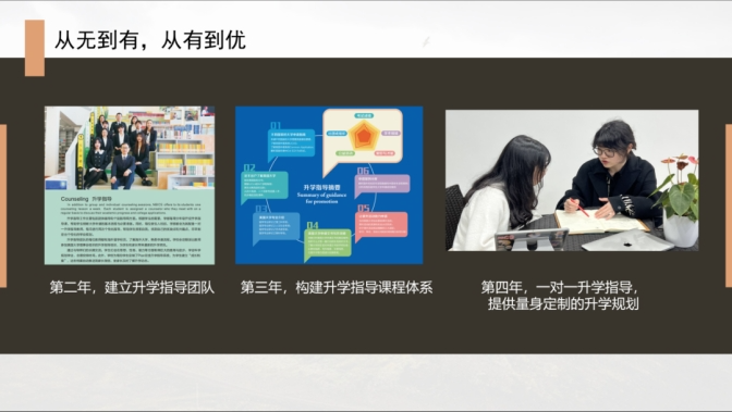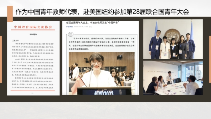 第四个困惑是“职业发展很迷茫怎么办”。针对这一问题,王老师分享了自己入选“甬行天下”国际理解教育课程开发组成员、打造《阿拉宁波人》国际理解教育课例以及以高中英语老师、升学指导老师、学院课程主管、教学主任四个身份来构思和撰写申请文书的经历。王老师指出,我们应把当下的事情做好,做不被定义的自己。