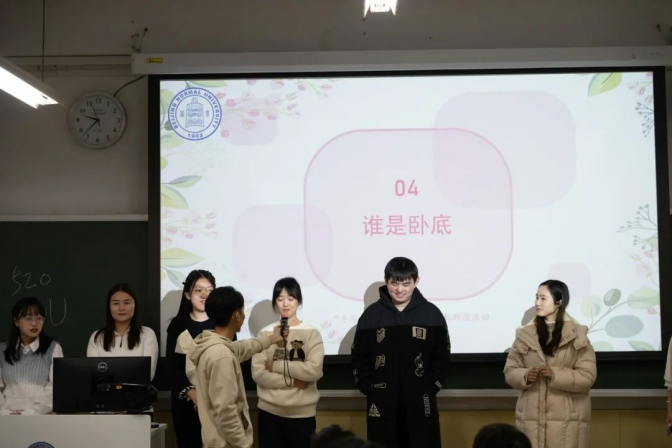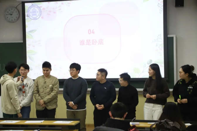 这是一场心理博弈,有的同学小心翼翼地试探着给出信息量最少的发言,有的则一不小心暴露了关键的细节,暴露了自己的卧底身份。两场比赛过后,最终都是平民玩家胜利!台上的玩家们头脑风暴,成功找出了卧底。台下的同学们也积极猜测,卧底和平民的关键词到底是什么?为什么玩家们对这个同学的发言反应如此强烈?精彩的游戏点燃了全场的热情。