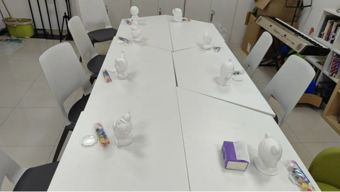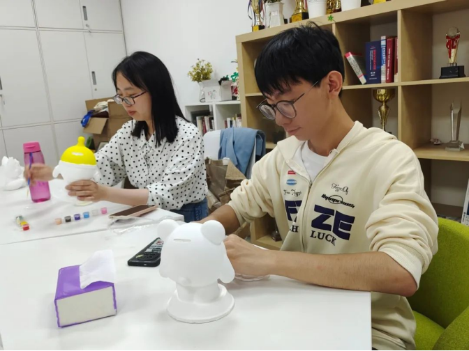 活动过程中,大家都心照不宣地将手机调至静音,安安静静地享受着这独属于彼此地静谧时光。在同学们富有创意的DIY下,原本空白的陶瓷娃娃渐渐改头换面,从毫无生气的模样变成了一个个童话故事的主角,让人看后叹为观止。