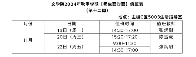 “师生面对面”是文学院学业辅导室和生活指导室联合推出的特别活动,每周不同时间段,文学院教师会在主楼C区5003值班,面对面与同学们交流,帮助同学们答疑解惑。