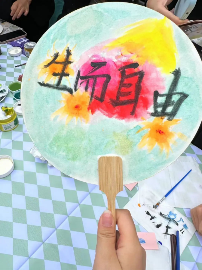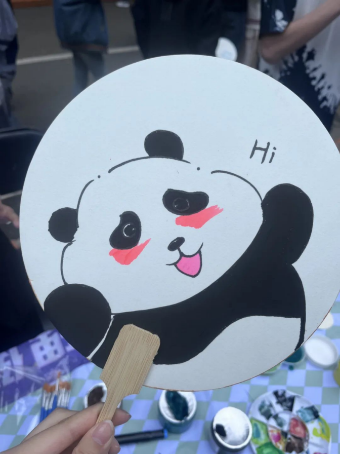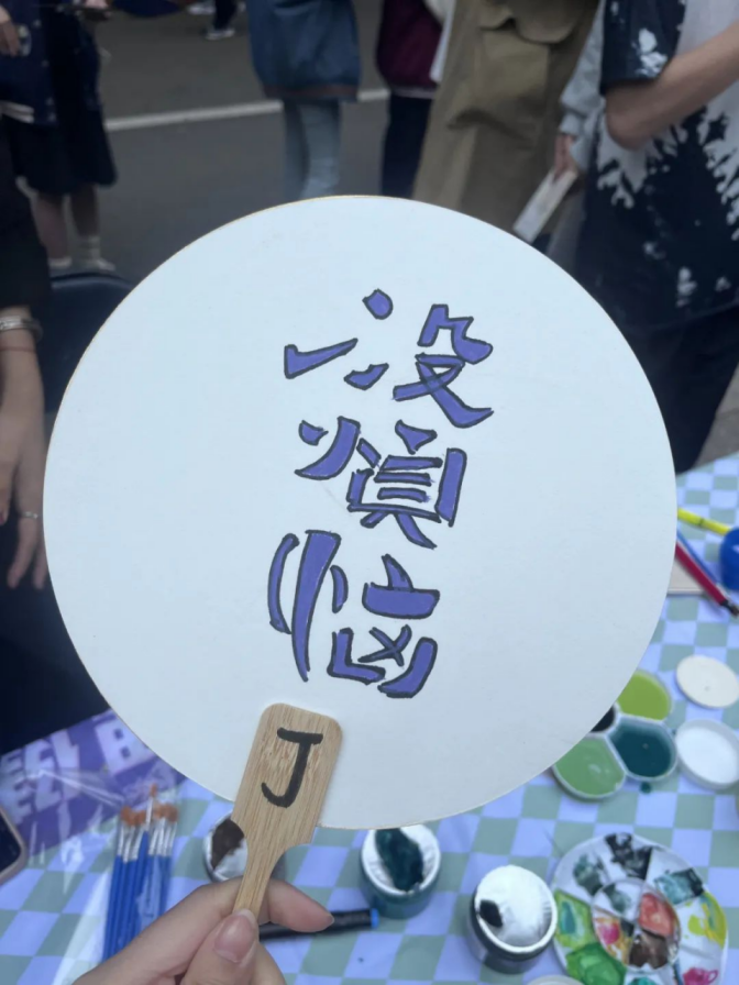 “彩绘团扇”活动现场弥漫着创造和艺术的气息,同学们通过团扇这一载体,不仅表达了自己的个人情感,也在这个过程中向中国传统文化致敬。他们用心地描绘着每一笔每一划,将心中的美好愿景和对传统文化的敬意都倾注在团扇上。