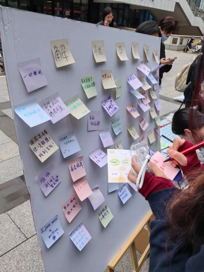 而那些被书写在便利贴上的烦恼,随着纸张的撕裂和丢弃,仿佛也随之消散在空气中。这是一种释放,一种对负面情绪的勇敢告别。在这场活动中,同学们不仅学会了如何分享和倾听,更学会了如何面对和释放,让自己的心灵在互助与理解中得到净化和成长。