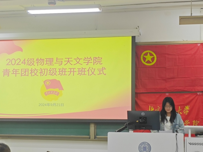 2024级物理与天文学院青年团校初级班开班仪式于9月21日晚上6点在我校教二楼准时开始,约200人参加了本次仪式。通过该仪式,报名青年团校初级班的团员同学不仅能够更好地认识青年团校,还能进一步了解中国共青团,提升对团组织的自豪感与使命感。