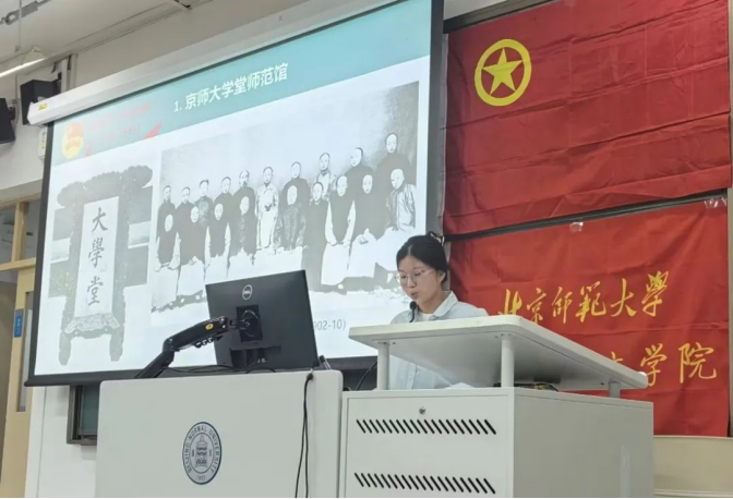 最后,黄斐君老师以“高举团旗跟党走,青春铸就中国梦”为主题,向我们介绍了北京师范大学青年运动史,用“胸怀祖国,投身建设”“改革春风,勇立潮头”“木铎金声,跨越百年”等分主题展示了北师大青年在党的事业中的伟大贡献。