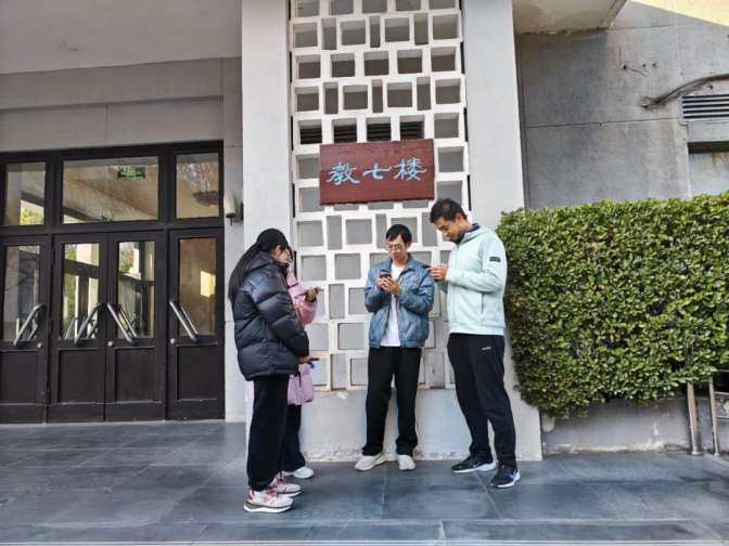 本次定向越野赛为定点打卡,共有10个小组。每个小组需要在指定地点扫码解题才能获得下一个地点的线索。每个小组从物理楼出发,需打卡五个地点,最后回到物理楼,以用时短者为胜。题目与我校各建筑物有关,题型包括了数学题、逻辑题、诗词题等。