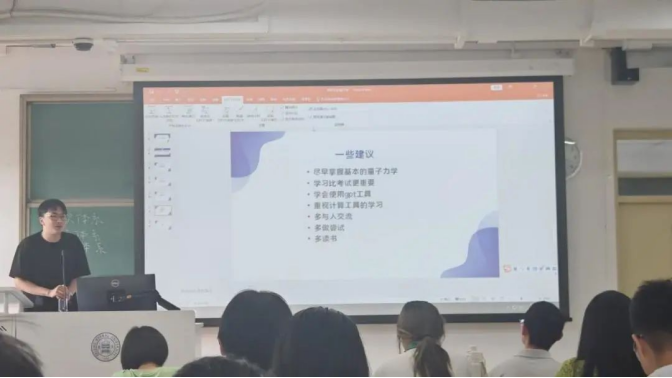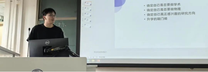 林蕴芊师姐结合自身经历,详细地给同学们介绍了大学物理类竞赛的项目以及参赛的准备工作。林师姐指出,在学习优先的前提下,可以通过参与竞赛达到锻炼能力开拓眼界的目的。