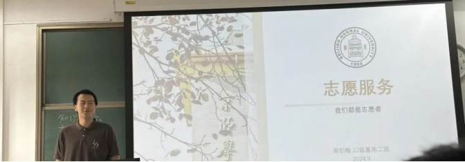 周伯翰师兄向同学们介绍了志愿服务的项目、渠道以及意义。他告诉同学们志愿活动不仅是提高个人能力的阶梯,更是享受服务社会乐趣的源泉。