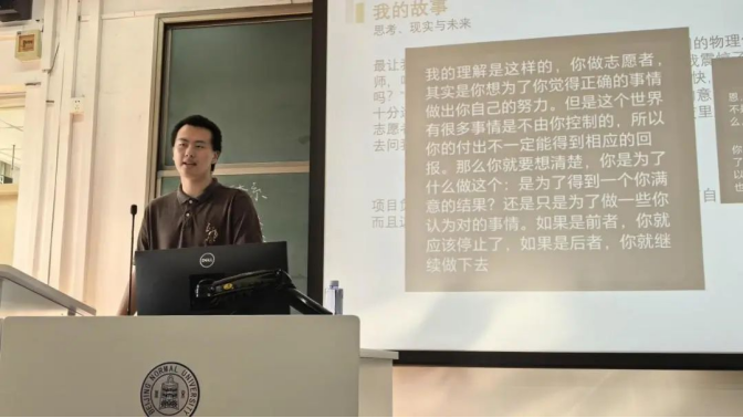 周师兄介绍了志愿北京以及白鸽青年志愿者协会等可以实现志愿梦想的途径。“去做自己认为正确的事,而不是为了结果。”他希望同学们都能完善自我,贡献社会。