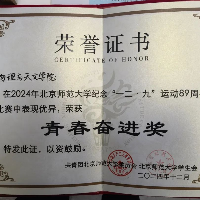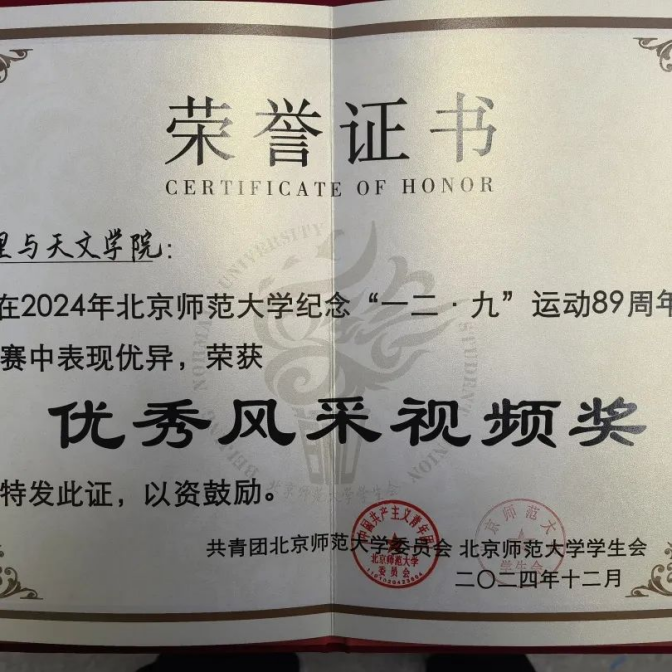 在寒风凛冽的冬日里,我们迎来了一年一度的一二·九运动纪念日。1935年12月9日,北平学生数千人举行了抗日救国示威游行,反对华北自治,反抗日本帝国主义,要求保全中国领土的完整,掀起全国抗日救国新高潮。这一历史性的爱国运动,至今仍激励着我们每一位青年学子。今年,北京师范大学物理与天文学院的学子们以饱满的热情参与了一二·九合唱活动,并荣获最佳风采视频奖和青春奋进奖,展现了物天学院学子的风采和精神风貌。
