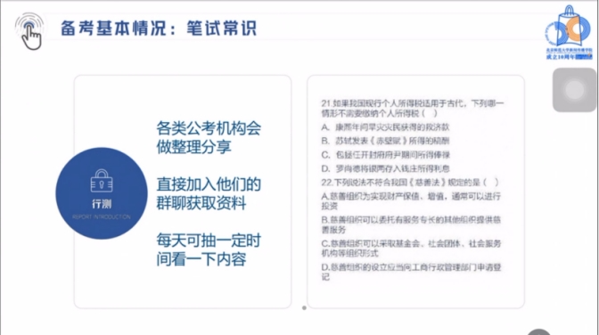 高琴师姐首先从笔试常识部分讲起。常识部分是各个公考机构都会做整理分享的一部分,也是大家在备考的过程中不需要花太多时间去看的内容,师姐建议大家去看公考机构做的一些整理分享即可。