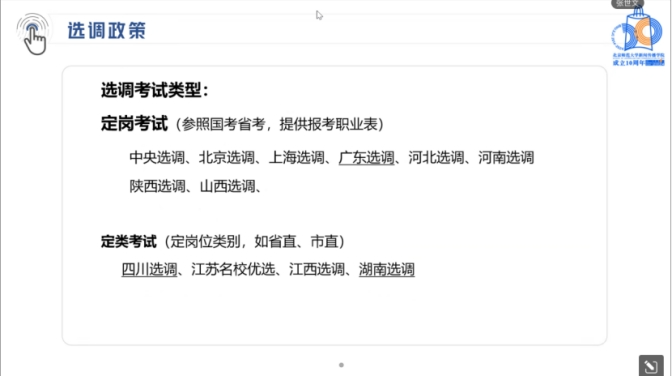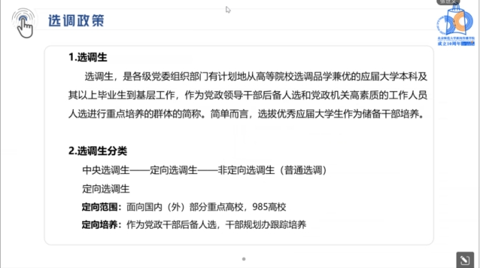 张世文师兄的分享主要是从选调政策、职业选择和备考建议三个方面展开。
