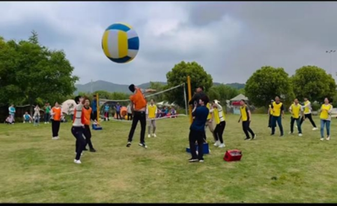 游戏规则:使用大排球,参照正常排球规则,不限制垫球次数