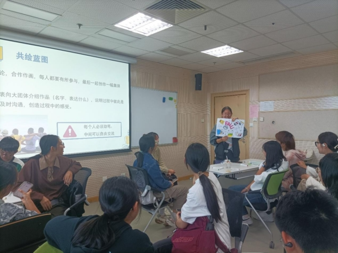 为了帮助新生们更好地规划未来,团辅活动还设置了“大学生活拼图”和“共绘蓝图”环节。新生们分组讨论,共同绘制了对大学生活乃至未来人生的美好愿景。