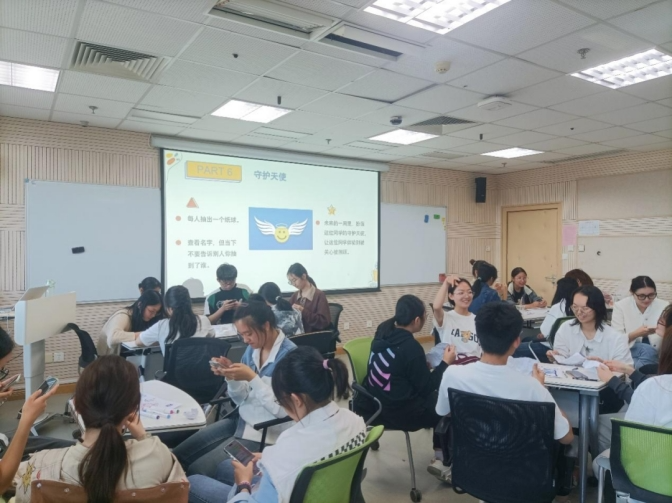 “守护天使”游戏将温暖拉满。参与同学随机抽取一位同伴的名字,成为对方的“守护天使”,在接下来的一周里默默关注并给予帮助,让对方体验到被关心被照顾。这个环节为新生们的校园生活增添了一份神秘与期待,也让新生们感受到了来自同伴的温暖与关怀。