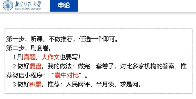 陈昭彤师姐从选调和军队文职两个角度谈了自己的经验,分享了一些有关选调和军队文职的信息渠道及注意事项。同时,强调了明确时间节点、好好学习和积极应战的重要性。陈昭彤师姐通过分享自己的备考历程,建议同学们根据自身情况明确目标,制定合理的学习计划。