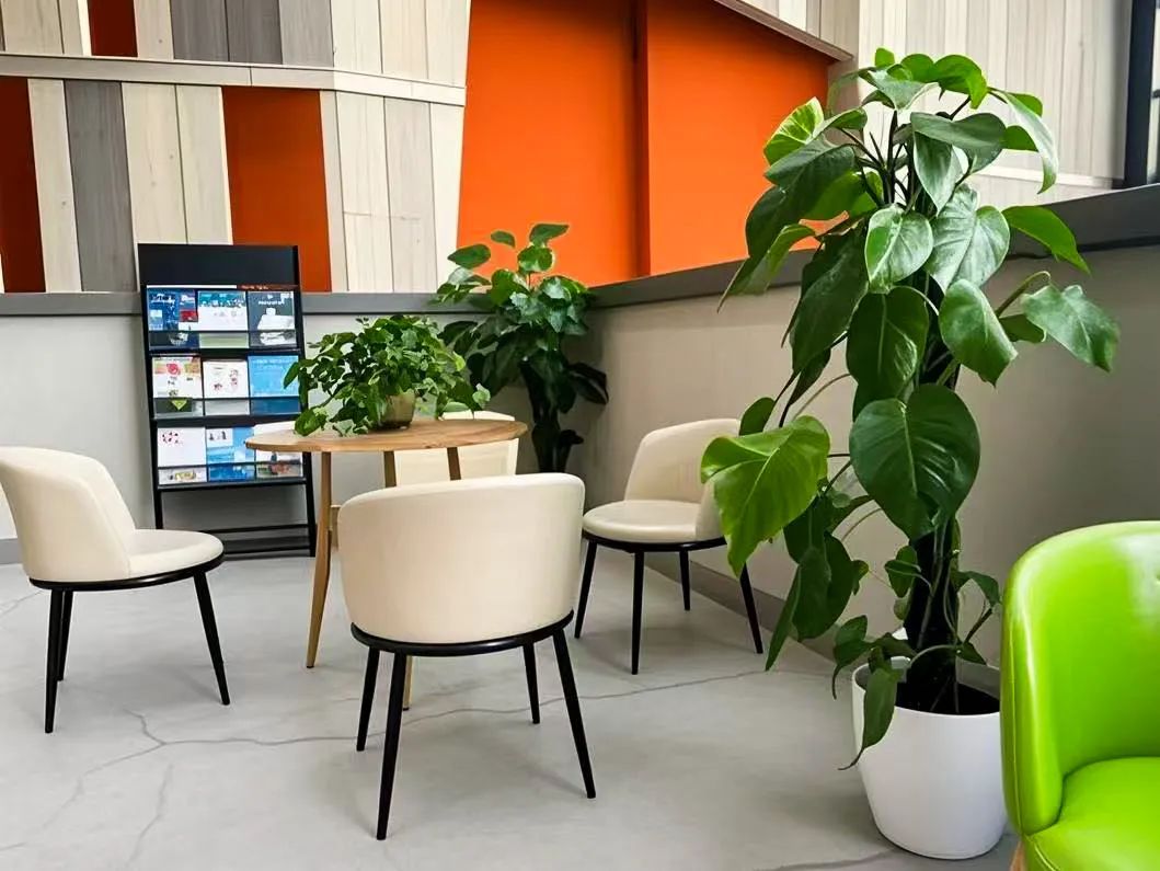 环境焕新:通透玻璃围栏搭配绿植景观,阳光倾洒,清风徐来。