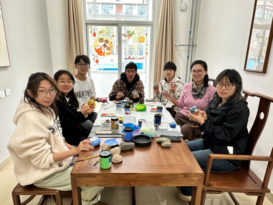 在石头绘画活动里,大家捡拾寻常石块,或绘红色地标,或画传统纹样,将审美创意与文化记忆绘于石上,摆放在书桌上让“以美育人”融入到生活中。