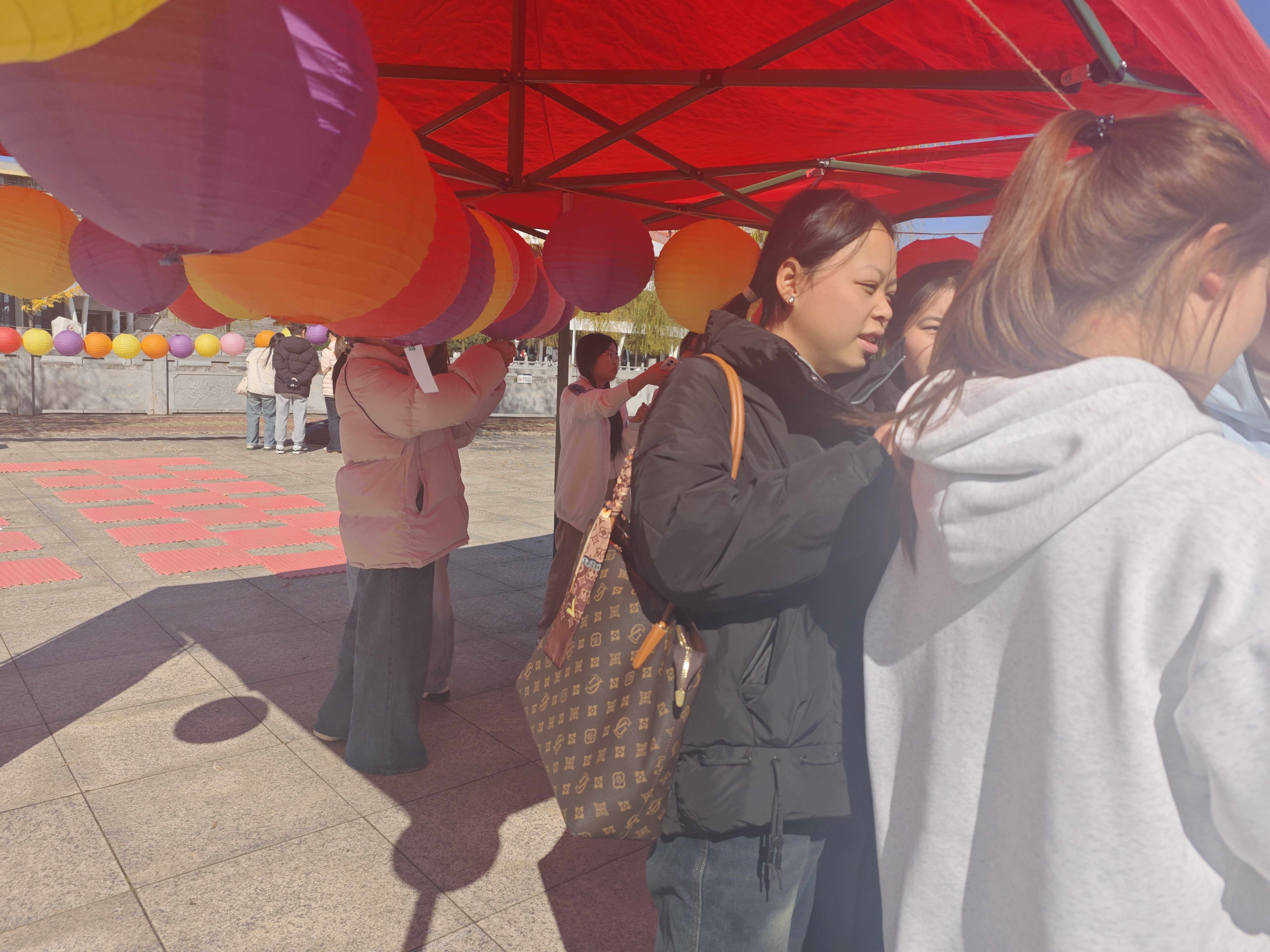 活动特设“寒衣主题灯谜区”,将“慎终追远”的追思内核与“家国同构”的情怀表达融入谜面设计。例如,“一纸寒衣寄边关”谜底为“戍边将士”,“冬日送暖润万家”谜底为“朱元璋授衣”,通过解谜过程引导学子思考个人孝道与国家情怀的内在联系。现场可见同学们时而托腮沉思“为何寒衣节与长城有深厚关联”,时而相视会心一笑解出“孟姜女哭倒长城”的典故谜题。在互动中,既实现“解谜-祈福”双线并行,又通过“书签许愿”环节传递对先人的追思与对家国的祈愿,形成情感教育与价值引领的双重目标。