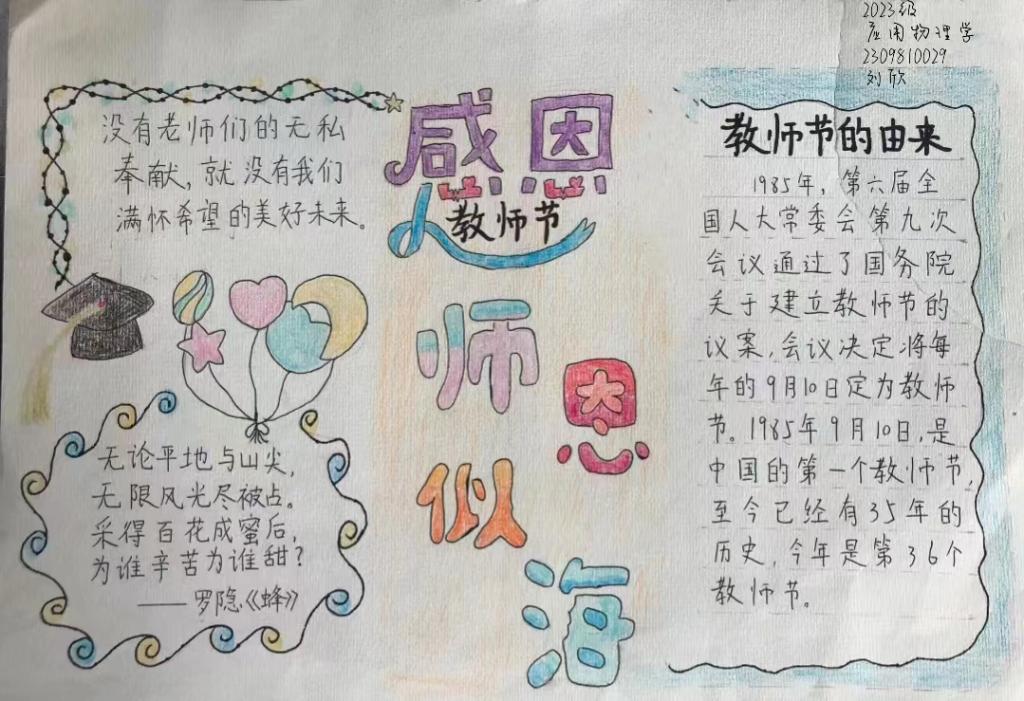 全校200余名学生积极参与活动、提交作品,大家以手写信、绘画、手写信配插图等多种方式来向父母家人、同伴好友、学校老师、国家社会表达自己的感谢感恩,作品形式多样独特、内容寓意深刻,充分展现了大学生感恩于心、行动于行的重要性。平时学习生活中,学生们也要对周围和给予自己关爱的人心存感激,学会尊重他人,回报他人的情感,拥有一颗感恩之心。