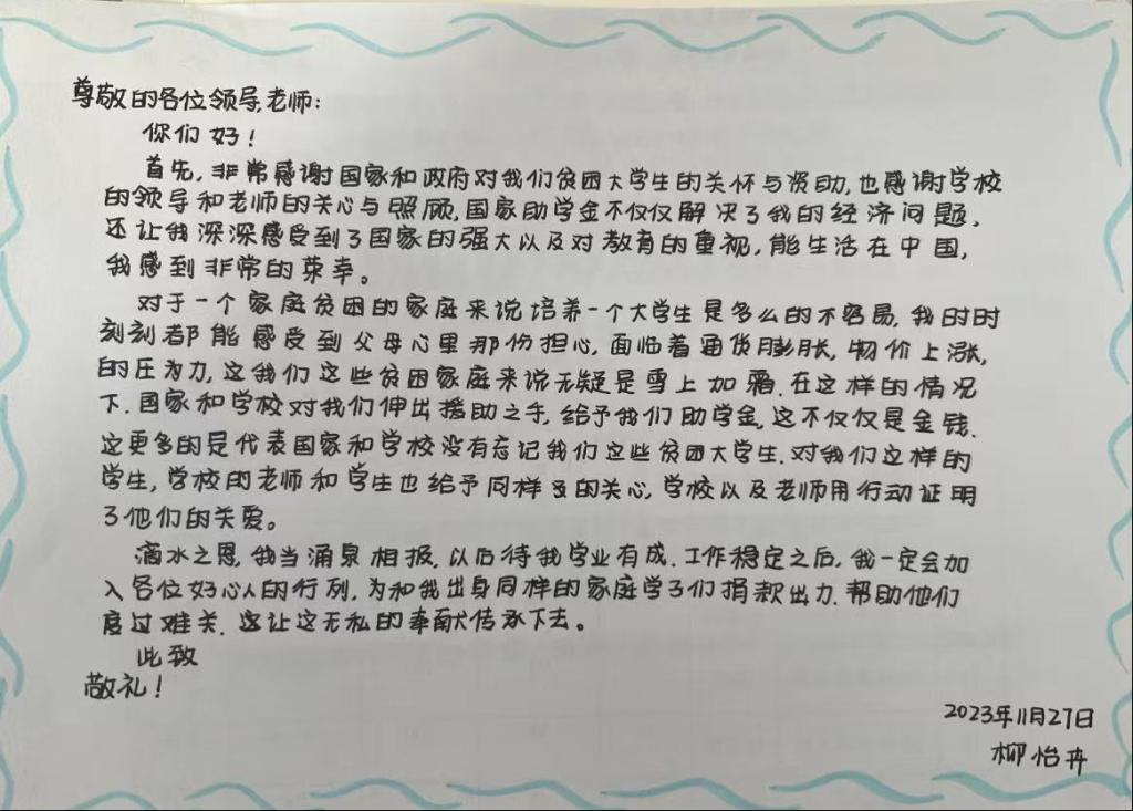 此次感恩主题资助育人活动的成功开展,有利于引导学生常怀感恩之心,不忘父母恩、师长恩、社会恩,塑造健全人格,提升社会责任感和使命感,增强奉献和回报社会的责任意识。同时,也是学院落实立德树人根本任务的重要举措,为进一步做好资助育人工作奠定了坚实基础。