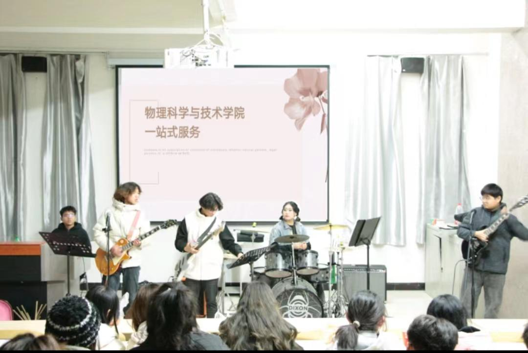 物理科学与技术学院学生组织于12月17日举办主题音乐会。让同学们在文艺活动中发现美、感受美。同学们登台开唱,为现场观众带来了一场视觉和听觉的盛宴。
