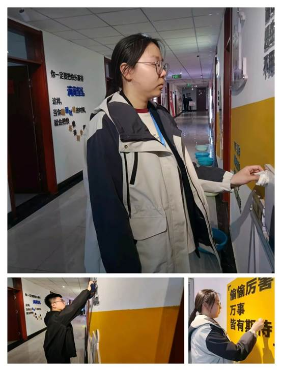 第三组的志愿者们小心翼翼地擦拭着室内各类装饰物品。志愿者们专注的眼神和轻柔的动作,让这些承载着校园记忆的装饰物重新绽放出耀眼的光芒。