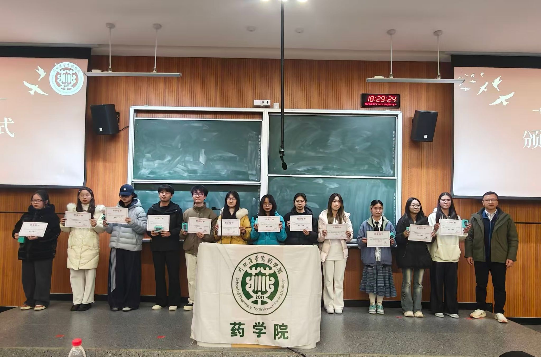 为表彰先进,树立典型,激励学生成长成才,12月29日晚,药学院在德启楼西101教室举行2024-2025学年学生表彰大会。学院党政领导、教师代表、全体辅导员、获奖学生及2024、2025级全体本科生、研究生参加了大会。