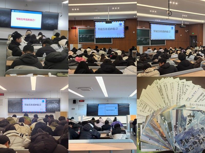 随后开启“生涯时光长廊”活动,回顾历次课程所留印象最深刻的概念、内容或感悟,形成集体记忆图谱,快速生动地重温整个课程体系;在“我的生涯关键词”分享环节,同学们结合专业特性,阐释个人职业规划的核心方向,“责任”“坚定”“精进”“踏实”“创新”等词汇频频出现,现场交流氛围热烈,促进自身生涯规划的深度内化和自我审视。最后“致五年后的自己”明信片书写环节,同学们以笔为媒,定格当下初心,写下对未来职业身份的期许、能力提升的目标与人生价值的追求。