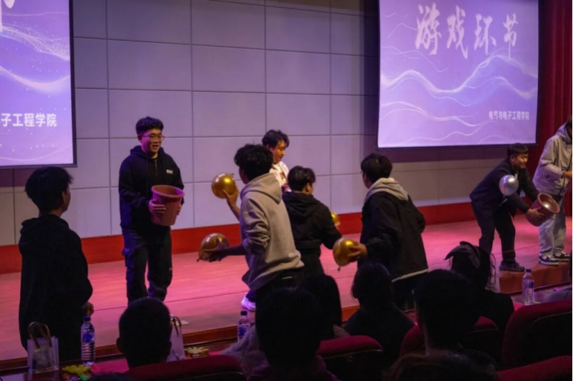 游戏环节同样精彩,现场氛围便切换至“欢乐模式”。主持人刚念完规则,台下同学们便纷纷举手,眼神里满是跃跃欲试的期待。未上台的同学也不甘示弱,自发组成“啦啦队”,为选手们加油支招,此起彼伏的笑声与呐喊声交织在一起,让陌生的彼此在轻松的互动中迅速拉近距离,也为整场晚会注入了更鲜活的烟火气。