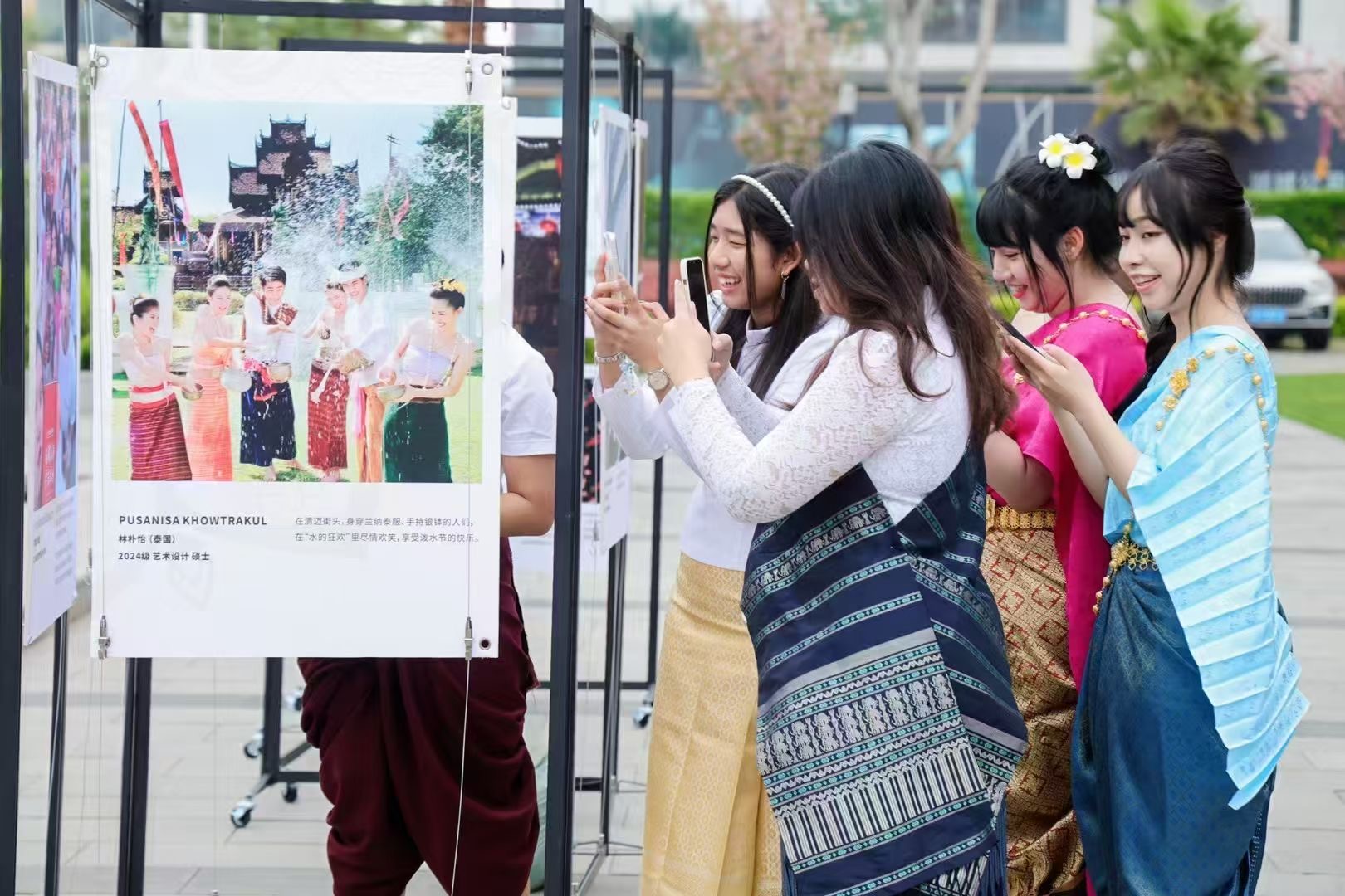 开幕式上,中外嘉宾送上节日祝贺,并共同为师生代表佩戴友谊徽章,象征中泰友谊薪火相传。中外青年学生以宋干节传统滴水仪式为中外嘉宾献上祝福。泰国传统舞蹈《美丽的宋干节》、泰语歌曲联唱、中外青年原创节目《中泰一家亲》等节目精彩纷呈,尽显异域风情与青春活力。