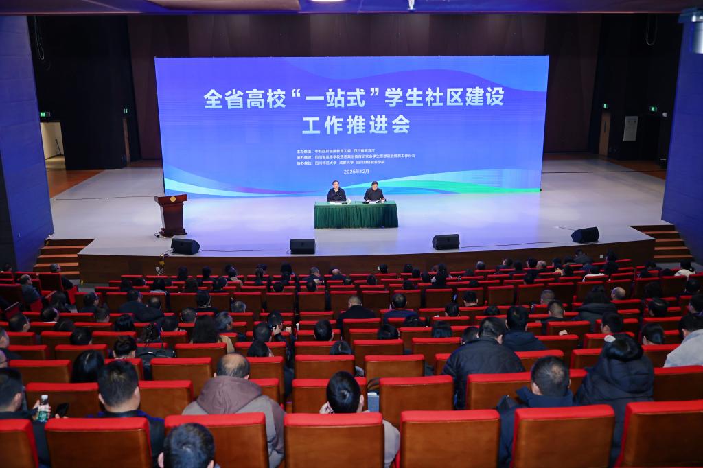 12月26日,由我校承办的全省高校“一站式”学生社区建设工作推进会成功举行。会议以“破壁垒·强协同·增效能:全面推进‘一站式’学生社区建设提质增效”为主题,近300名专家学者与会展开深入交流。省委教育工委副书记、教育厅党组成员张澜涛,我校党委书记刘强,四川师范大学党委副书记张海东,教育厅相关处室负责人,以及全省高校学工系统分管校领导和相关部门负责人出席会议。天津大学学工部部长赵欣受邀作专家报告,会议由张海东主持。