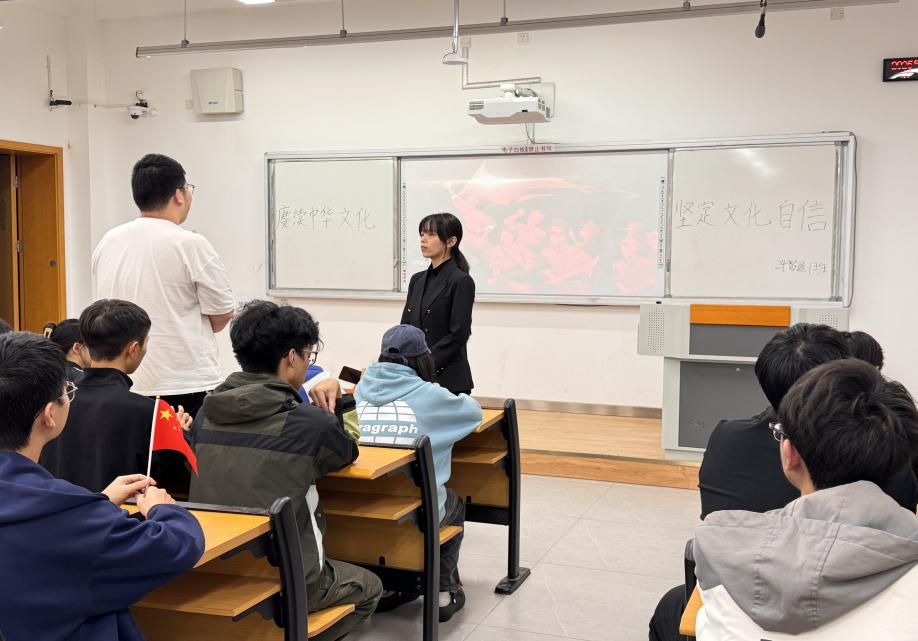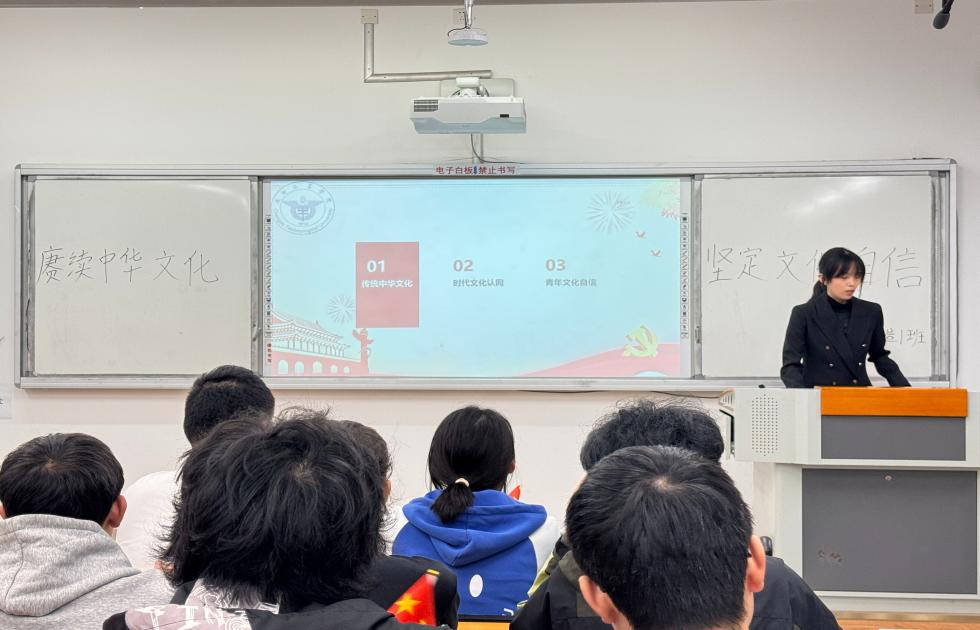 为深入学习习近平文化思想,引导同学们汲取中华优秀传统文化精神力量,10月20日在彭炳楼1B108,24智造1班成功举办了一场以“赓续中华文化,坚定文化自信”为主题的团日活动。活动由2024级智能制造工程1班团支书杨心瑞主持,班级全体同学参与。