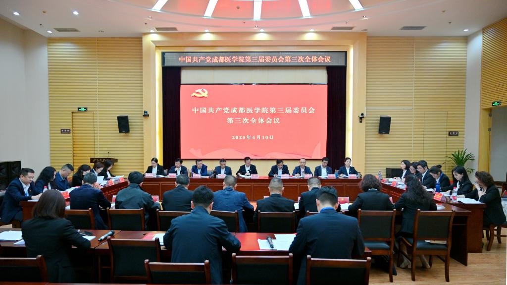中国共产党成都医学院第三届委员会第三次全体会议于2025年4月10日在新都校区召开。22名党委委员出席会议,校纪委委员、党委有关部门人员列席会议。全会由校党委常委会主持。校党委书记来建主持会议并讲话。