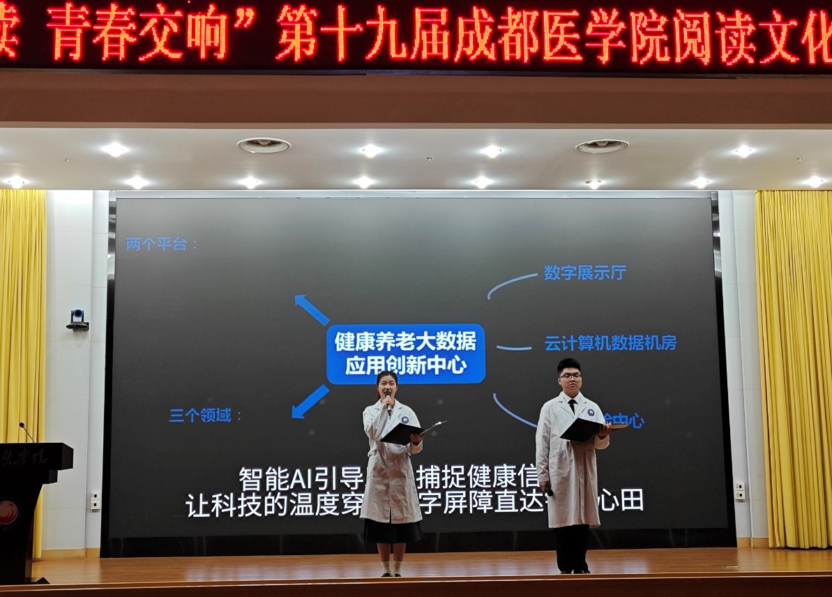 “当未来的画卷在时代的浪潮中展开,是谁用智慧描绘医学未来的星辰?”临床医学院学生贺怡雯、袁宇为大家表演了以展示成医文化、成医成就为主题的诵读表演——《生命•未来》。随着同学们的深情朗诵,大家仿佛穿梭于成医78年栉风沐雨的历史画卷,也更加坚定了全体师生奋进拼搏的决心。