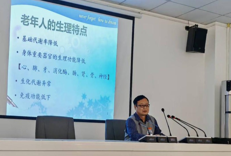 学校国家级临床医学实验教学中心原主任赖雁教授以“老年健康保健重在预防”为主题,围绕老年人常见慢性病防治、季节养生要点、合理膳食搭配等内容开展讲座。赖雁教授结合案例,用通俗易懂的语言讲解了高血压、糖尿病等慢性病的日常管理方法,并针对夏季气候特点,提醒老年人在饮食起居、运动锻炼中需注意的细节。同时,通过现场讲解和互动问答,科普了急救常识、用药安全等实用知识,帮助老年人树立“防大于治”的健康理念。他还叮嘱大家关注身体变化,定期体检。现场老人纷纷提问并为活动点赞。此次讲座不仅为老年人搭建了学习健康知识的平台,更让他们感受到温暖与关怀。