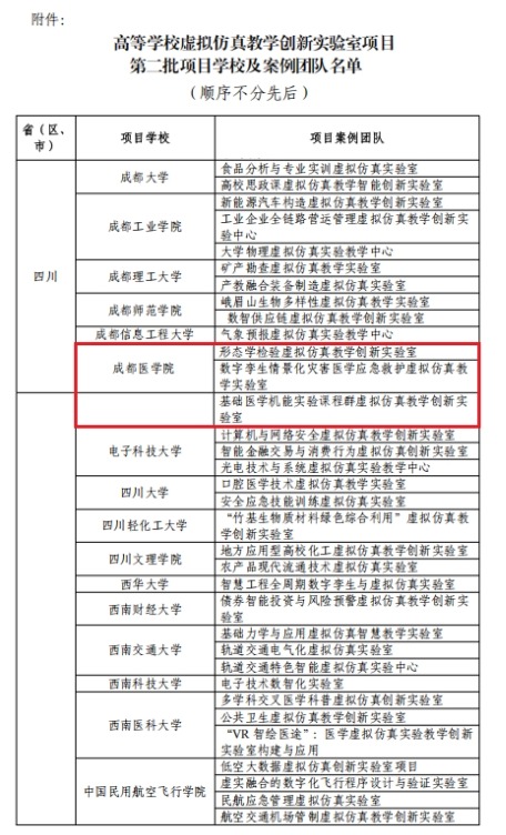 成都医学院新增3项教育部高等学校虚拟仿真教学创新实验室项目