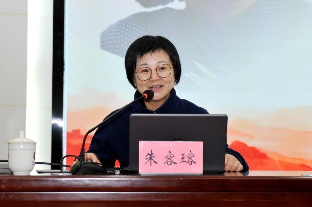 “烈士血染新中国,枫叶红于二月花”,在题为《沉默的荣耀 永恒的信仰》的报告中,朱容瑢女士借助丰富的史料与珍贵图片,带领师生重回烽火连天的革命岁月。她细致梳理了朱枫烈士从确立理想到献身革命的真实足迹:变卖传家钻戒支援党的出版工作,几易化名潜入险境开展隐蔽斗争,平凡日常中对战友的深切关怀……以及在最后的时光,身陷囹圄,仍以吞金自戕的方式捍卫组织的秘密,展现出一名共产党员的似水柔情和铮铮铁骨。通过跨越时空的深情讲述,朱容瑢女士为青年学子勾勒出一位追求真理、忠贞不渝的共产主义战士的光辉形象,令在场师生不禁动容。