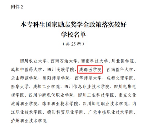 近日,四川省教育厅发布2024-2025学年高校国家奖助学金政策落实情况通报,成都医学院同时入选“本专科生国家奖学金”和“本专科生国家励志奖学金”政策落实较好学校名单。