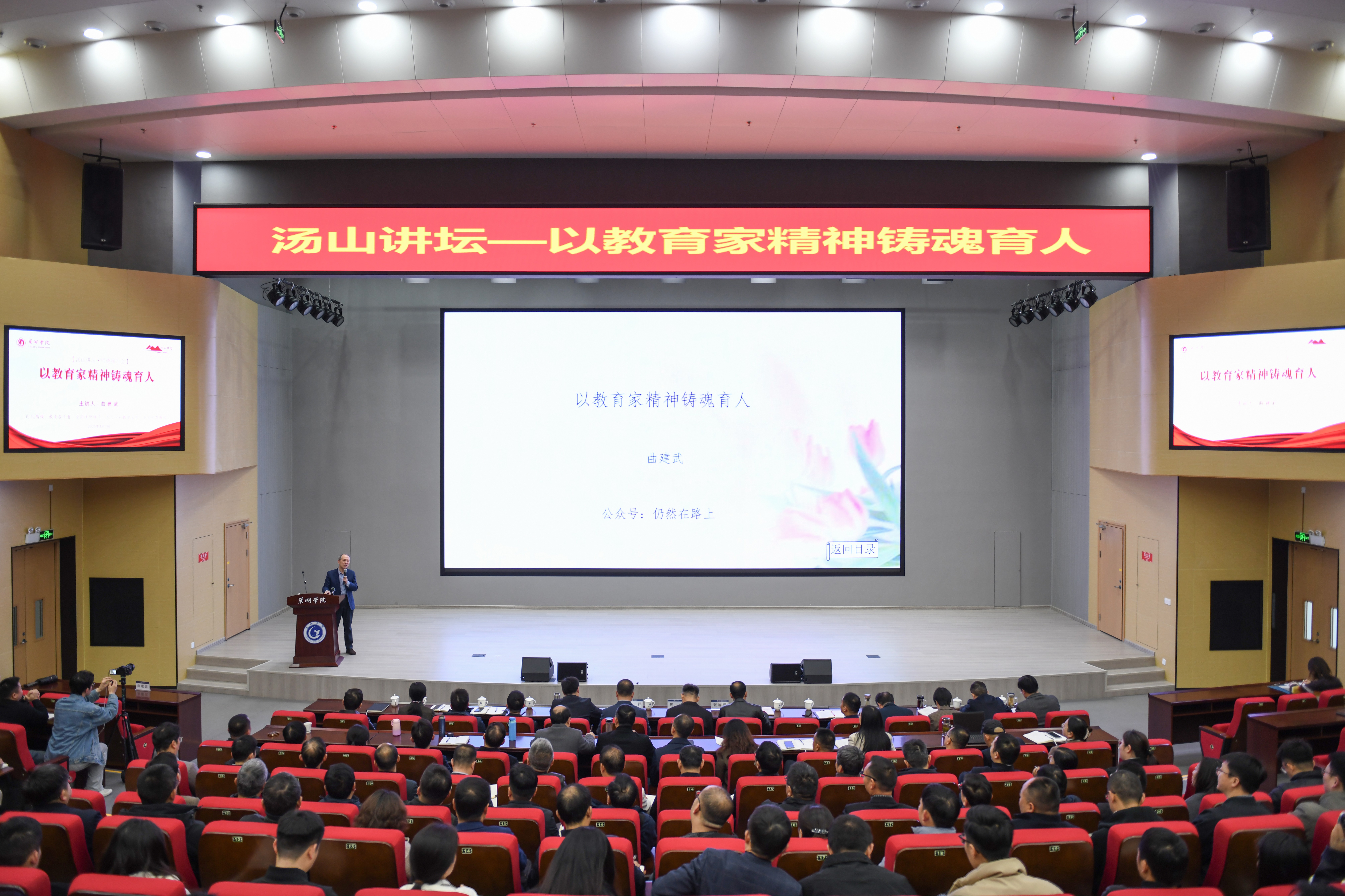 “时代楷模”、全国优秀教师曲建武教授受邀作题为《以教育家精神铸魂育人》的专题报告。全校处级以上领导干部、专职辅导员、马克思主义学院全体教师及其他学院无授课任务教师共计500余人参会。校党委书记周峰主持报告会。