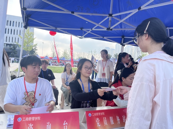 迎新期间,学校党委在环巢湖文化展馆、服务台和各学院迎新点设立党员示范岗,党员同志主动亮身份,统一佩戴党员徽章,为新生及家长介绍专业特色、环巢湖文化、校园生活和发展党员等相关疑问,全程引导办理入学手续,如安排讲解员在环巢湖文化展馆进行讲解等;面对新生行李多、搬运不便的情况,党员志愿者率先垂范,主动扛起服务重任,用心用情做好服务工作,真正践行“一名党员就是一面旗帜”的庄严承诺。