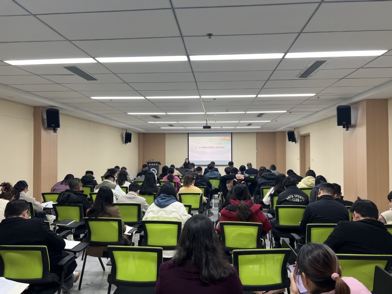 11月26日上午,学工部邀请马克思主义学院夏明群老师来到“一站式”学生社区,为学工部全体党员、各二级学院全体学生工作队伍作“乘势而上 向着宏伟目标接续奋斗——深刻领会党的二十届四中全会精神”专题报告。夏明群从“十五五”规划编制为何如此重要、“十四五”时期取得哪些重大成就和党的二十届四中全会擘画了怎样的蓝图三个方面,结合高校大学生实际,深入解读全会精神对学生工作的实际指导意义。